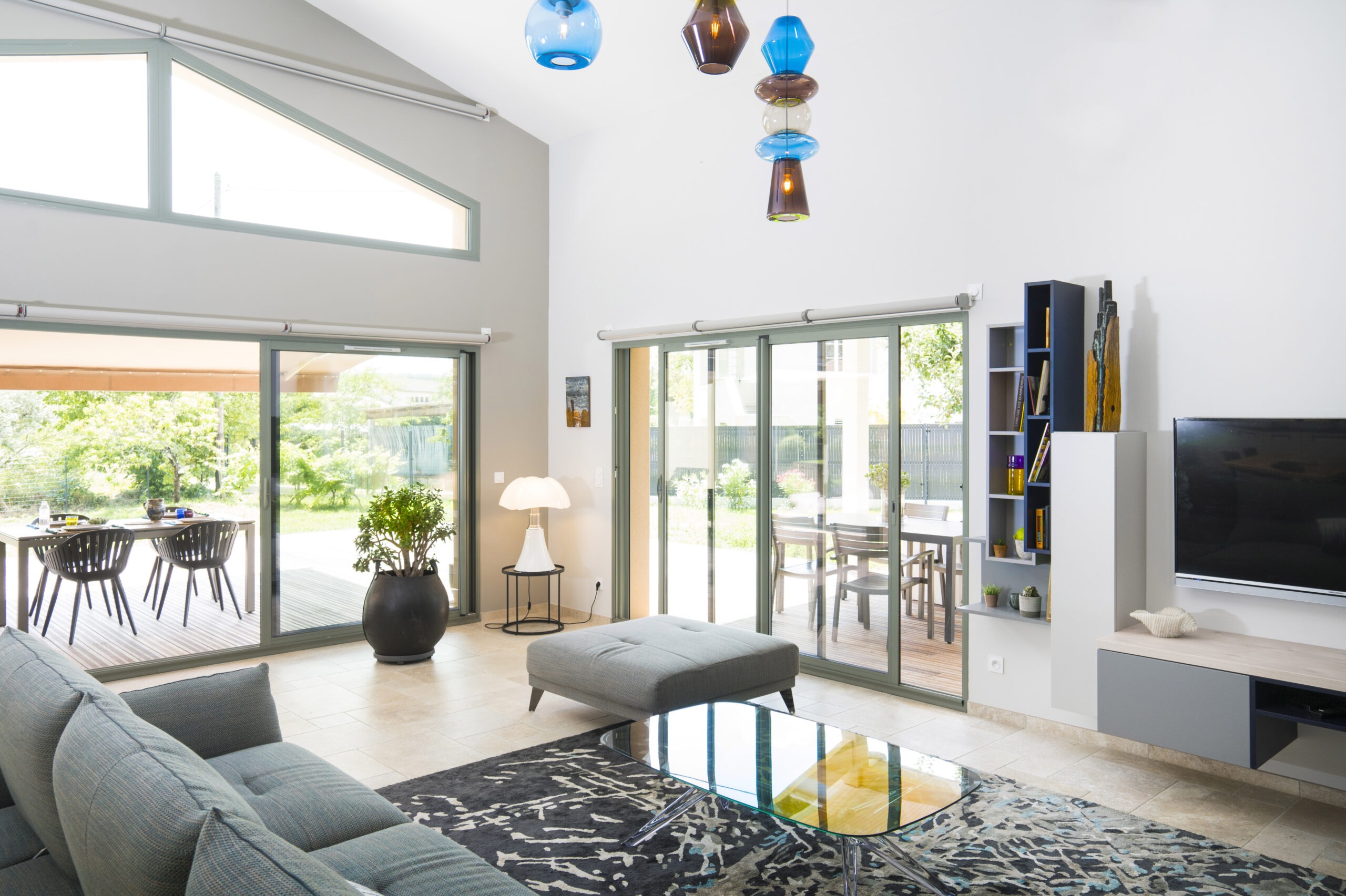 Les baies vitrées relient jardin et salon/séjour, maximisent l’apport lumineux et les vues. Les châssis fixes cadrent un paysage avec d’excellentes performances (pas d’ouvrant). Les impostes hautes capent la luminosité en second jour pour éclairer les circulations. Combinez-les selon les orientations.