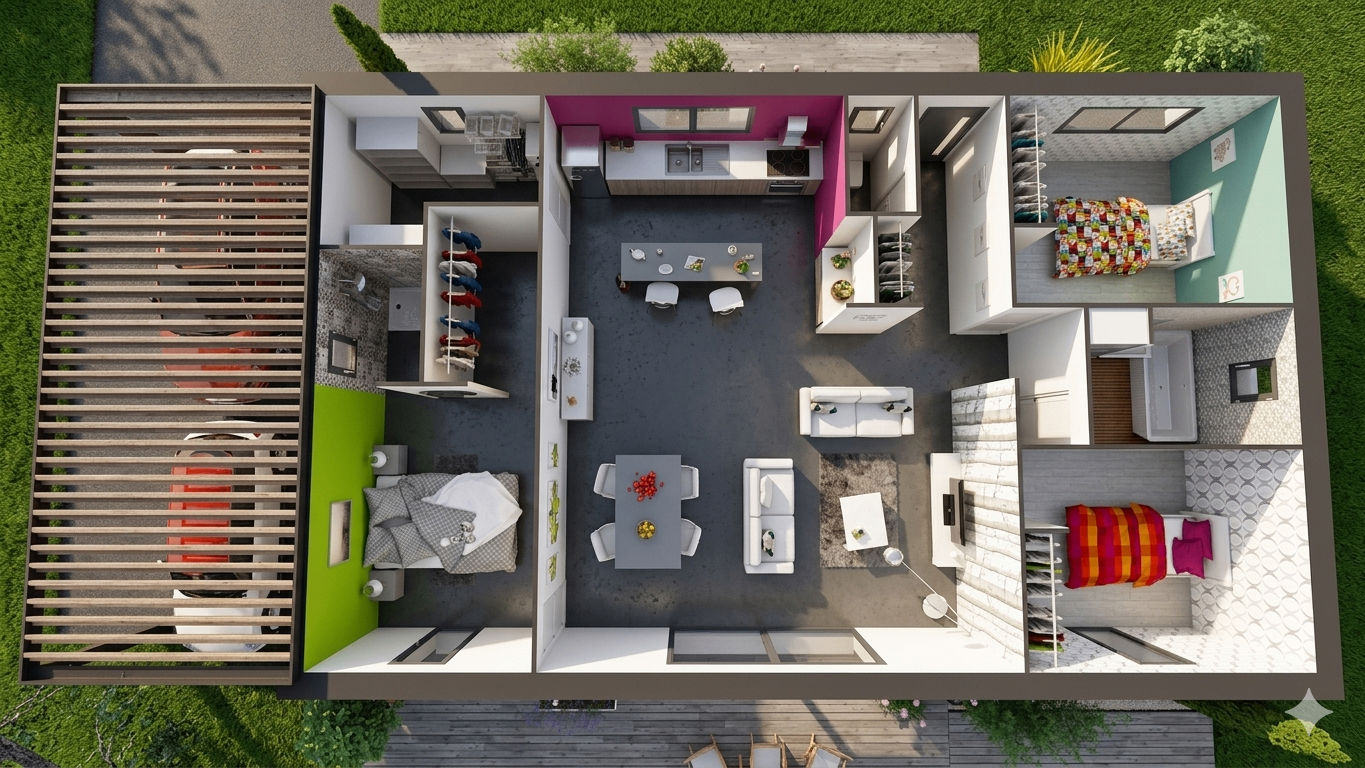 Les aménagements intérieurs de ce modèle ont été pensés pour obtenir un confort optimal dans toutes les pièces, en limitant au maximum les m2 inutilisés.
