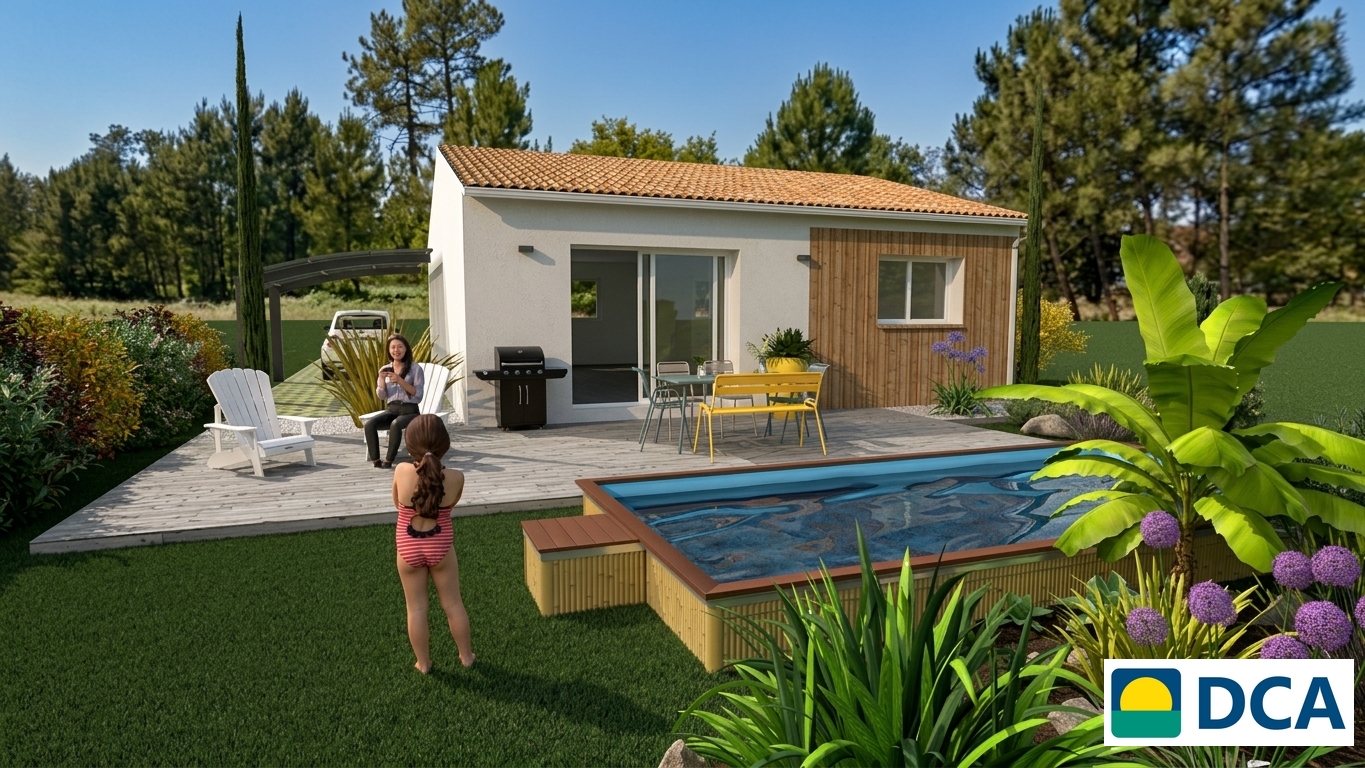 *Le prix indiqué est hors frais de raccordements, de branchements, d’adaptation au sol et de notaire sur le terrain. Ce prix est conseillé et soumis à variation en fonction des secteurs géographiques. Il n’inclut pas les options, ni les aménagements extérieurs et intérieurs (éléments de décoration, mobilier, cuisine équipée...). Garanties et assurances obligatoires incluses (voir détails en agence). Le terrain a été sélectionné et vu pour vous, sous réserve de disponibilité et au prix indiqué par notre partenaire foncier.