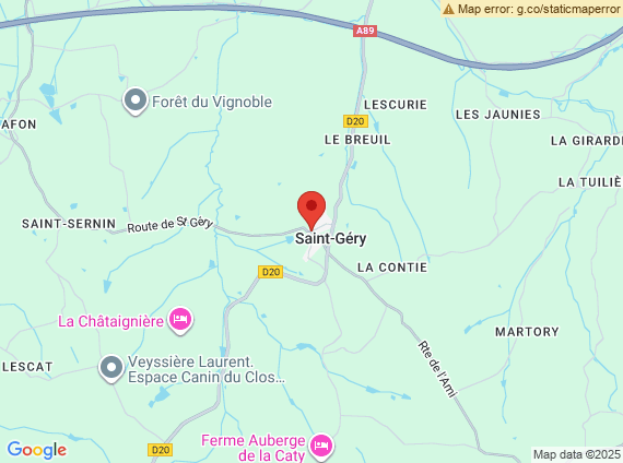 A 5 min de l'A89 entre Bordeaux et Périgueux et 5 min de Mussidan, ce joli terrain plat est situé en centre bourg de Saint Géry. La commune est dotée d'un coiffeur, terrain de tennis et bar. Très agréable à vivre, le terrain est déjà équipé du coffret compteur électrique.