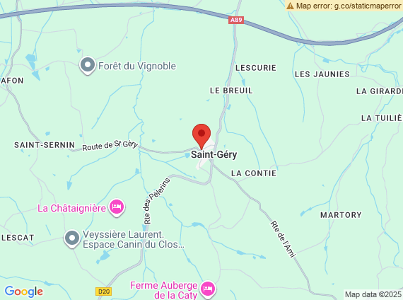 A 5 min de l'A89 entre Bordeaux et Périgueux et 5 min de Mussidan, ce joli terrain plat est situé en centre bourg de Saint Géry. La commune est dotée d'un coiffeur, terrain de tennis et bar. Très agréable à vivre, le terrain est déjà équipé du coffret compteur électrique.