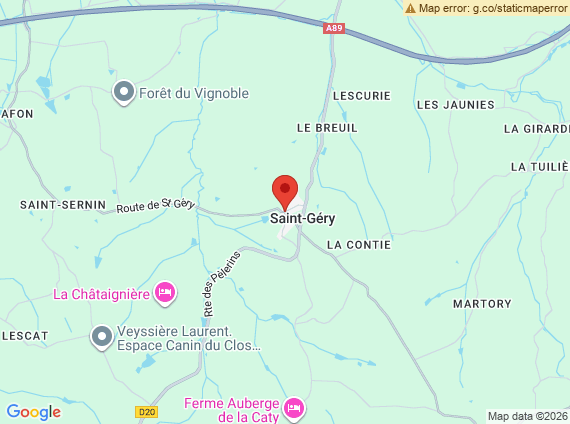A 5 min de l'A89 entre Bordeaux et Périgueux et 5 min de Mussidan, ce joli terrain plat est situé en centre bourg de Saint Géry. La commune est dotée d'un coiffeur, terrain de tennis et bar. Très agréable à vivre, le terrain est déjà équipé du coffret compteur électrique.