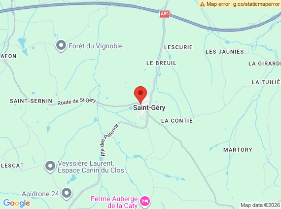 A 5 min de l'A89 entre Bordeaux et Périgueux et 5 min de Mussidan, ce joli terrain plat est situé en centre bourg de Saint Géry. La commune est dotée d'un coiffeur, terrain de tennis et bar. Très agréable à vivre, le terrain est déjà équipé du coffret compteur électrique.