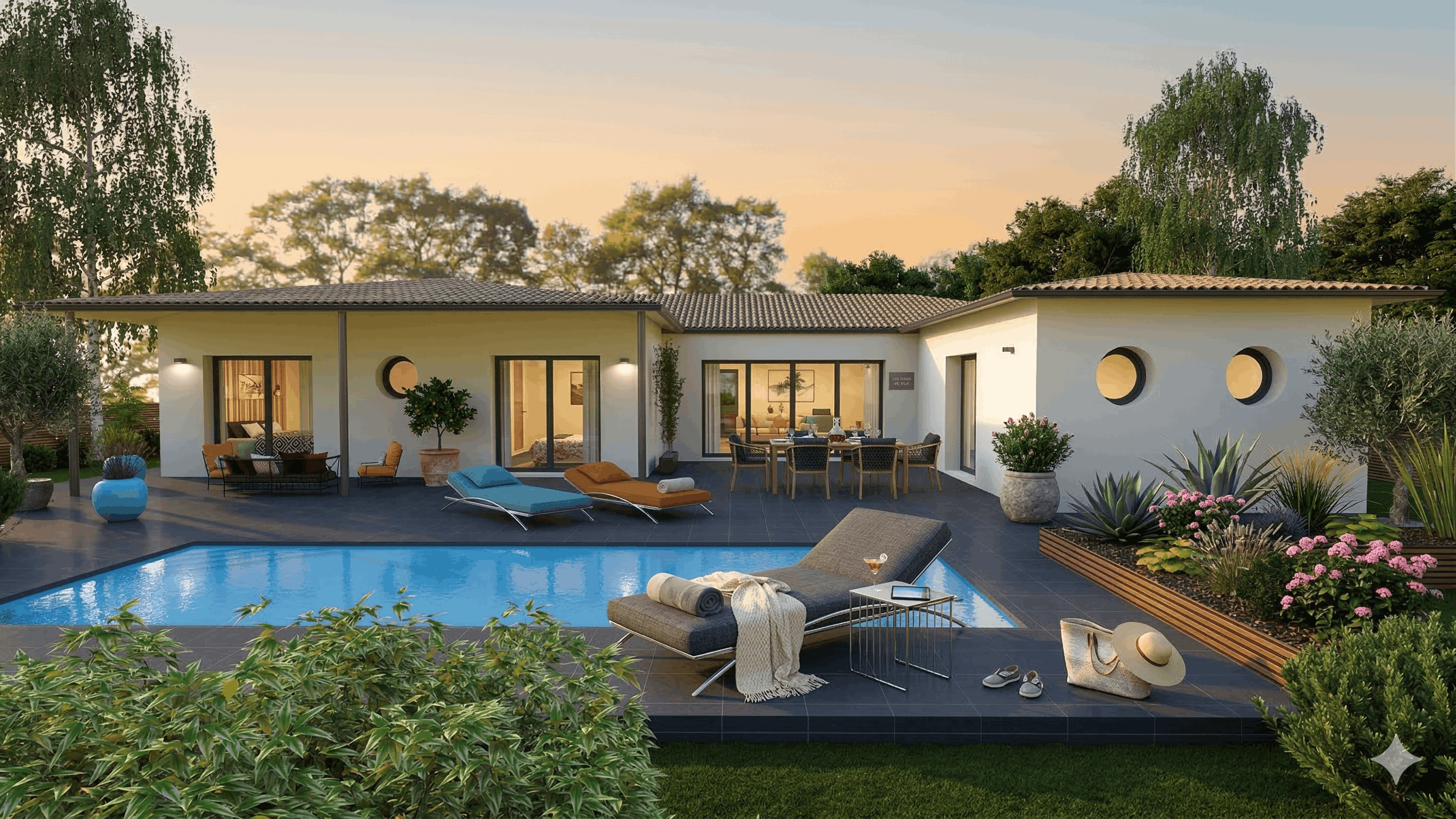 *Le prix indiqué est hors frais de raccordements, de branchements, d’adaptation au sol et de notaire sur le terrain. Ce prix est conseillé et soumis à variation en fonction des secteurs géographiques. Il n’inclut pas les options, ni les aménagements extérieurs et intérieurs (éléments de décoration, mobilier, cuisine équipée...). Garanties et assurances obligatoires incluses (voir détails en agence). Le terrain a été sélectionné et vu pour vous, sous réserve de disponibilité et au prix indiqué par notre partenaire foncier.