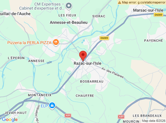 Proximité immédiate des commodités du bourg de Razac-sur-l'Isle (écoles, commerces) et de la zone commerciale de Marsac-sur-l'Isle, à l’ouest de Périgueux.