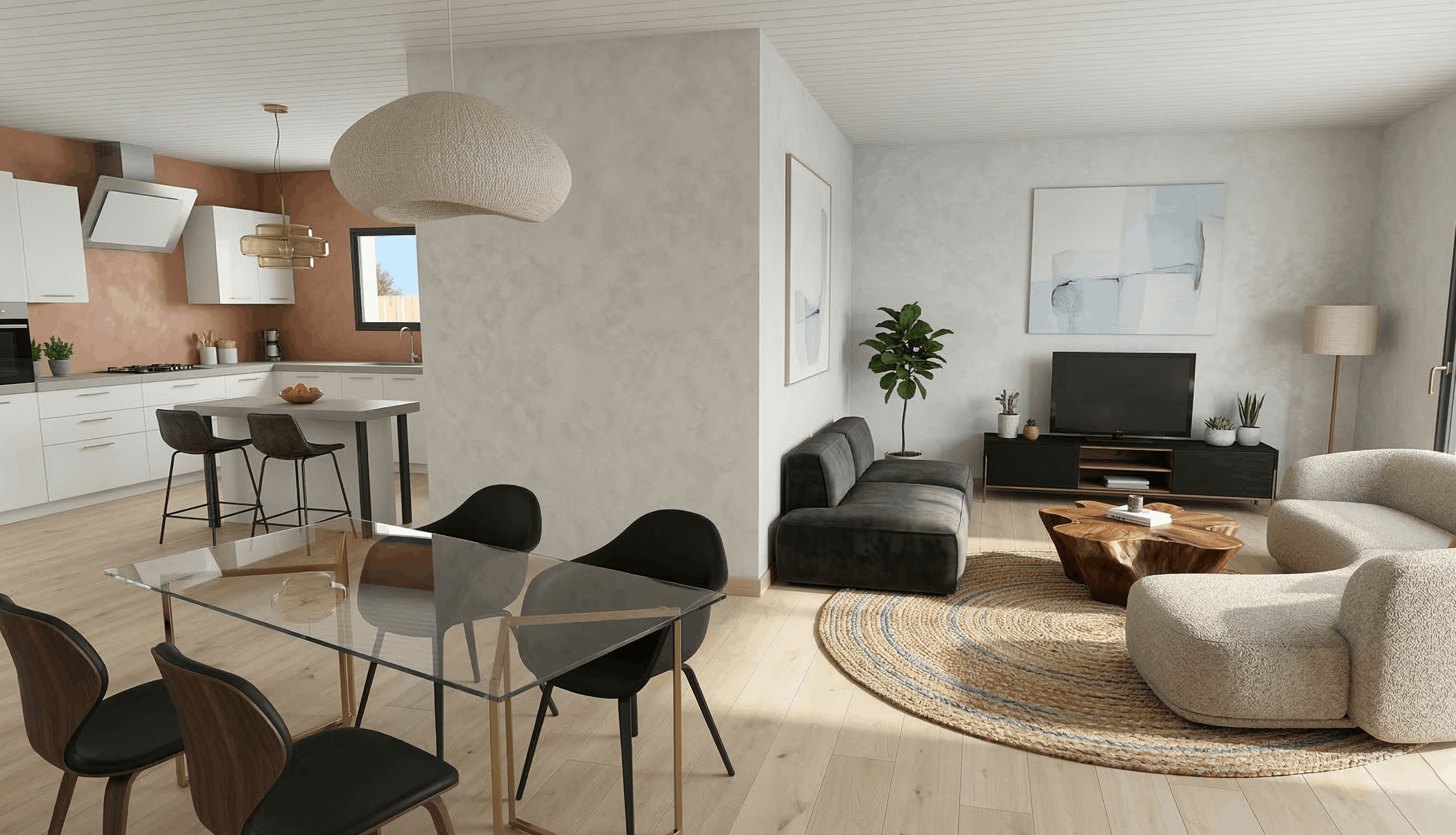 Avec ses volumes décalés, ses couleurs originales et son espace de vie baigné de lumière, ce joli plain-pied répondra parfaitement à vos envies de modernité. Disposant de 4 chambres dont une suite parentale, c’est la maison familiale par excellence. Ce modèle est également équipé d’avants toits bioclimatiques pour un confort thermique optimal en toute saison.