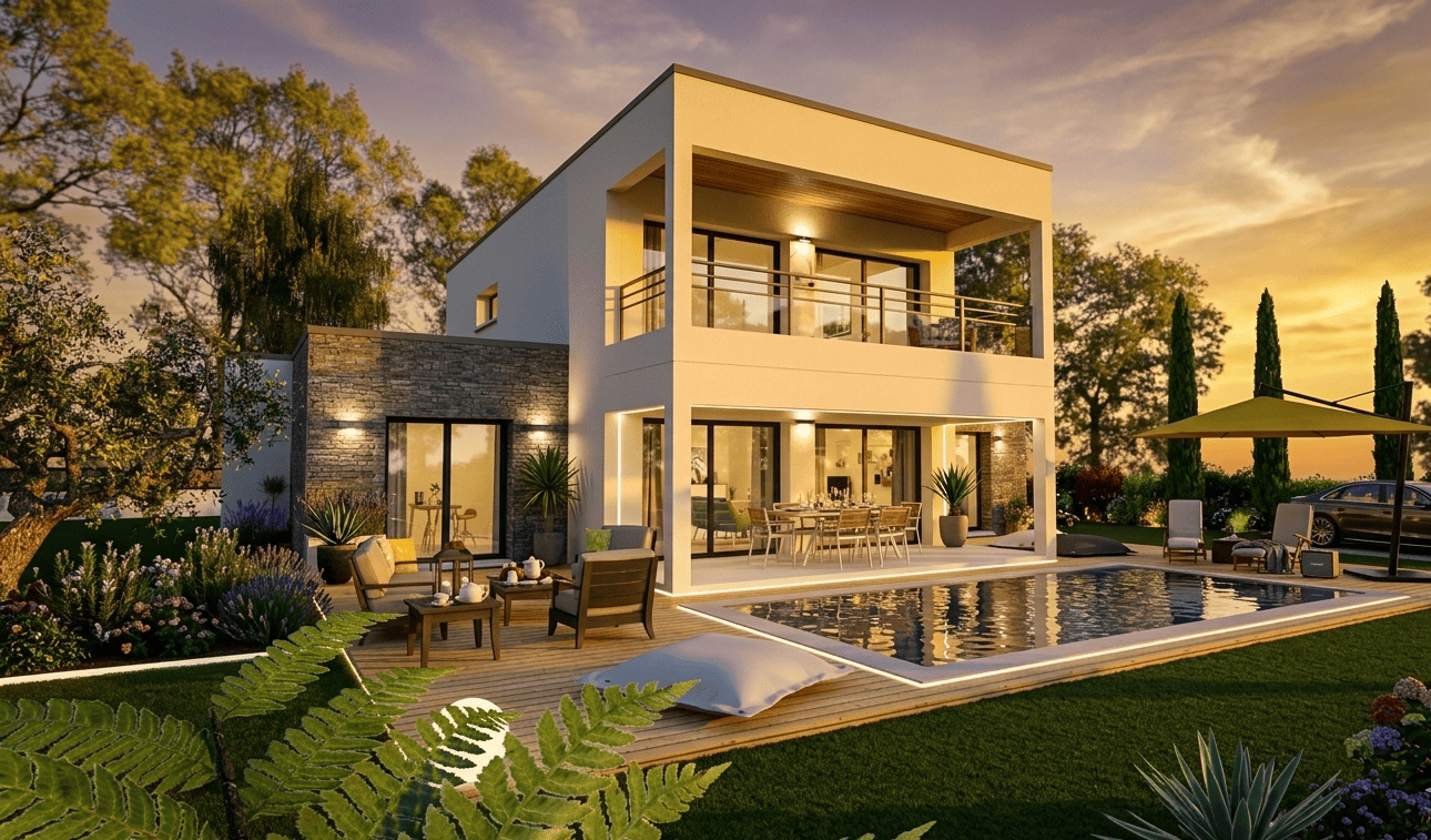 Son séjour de 57 m² donne directement sur une terrasse couverte de 15m². L’inspiration vous vient dans sa cuisine spacieuse de 13m² en lien direct avec son cellier de 7m². Sa suite parentale de 33 m² vous assure des nuits douces et paisibles, et son bureau de 12 m² vous offre le confort de concentration dont vous avez besoin.