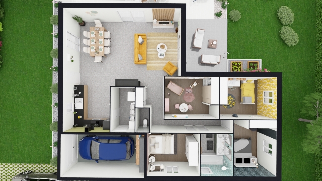 Terrain 667 m2 | Modèle | 110 m2 | 3 Chambres | Garage