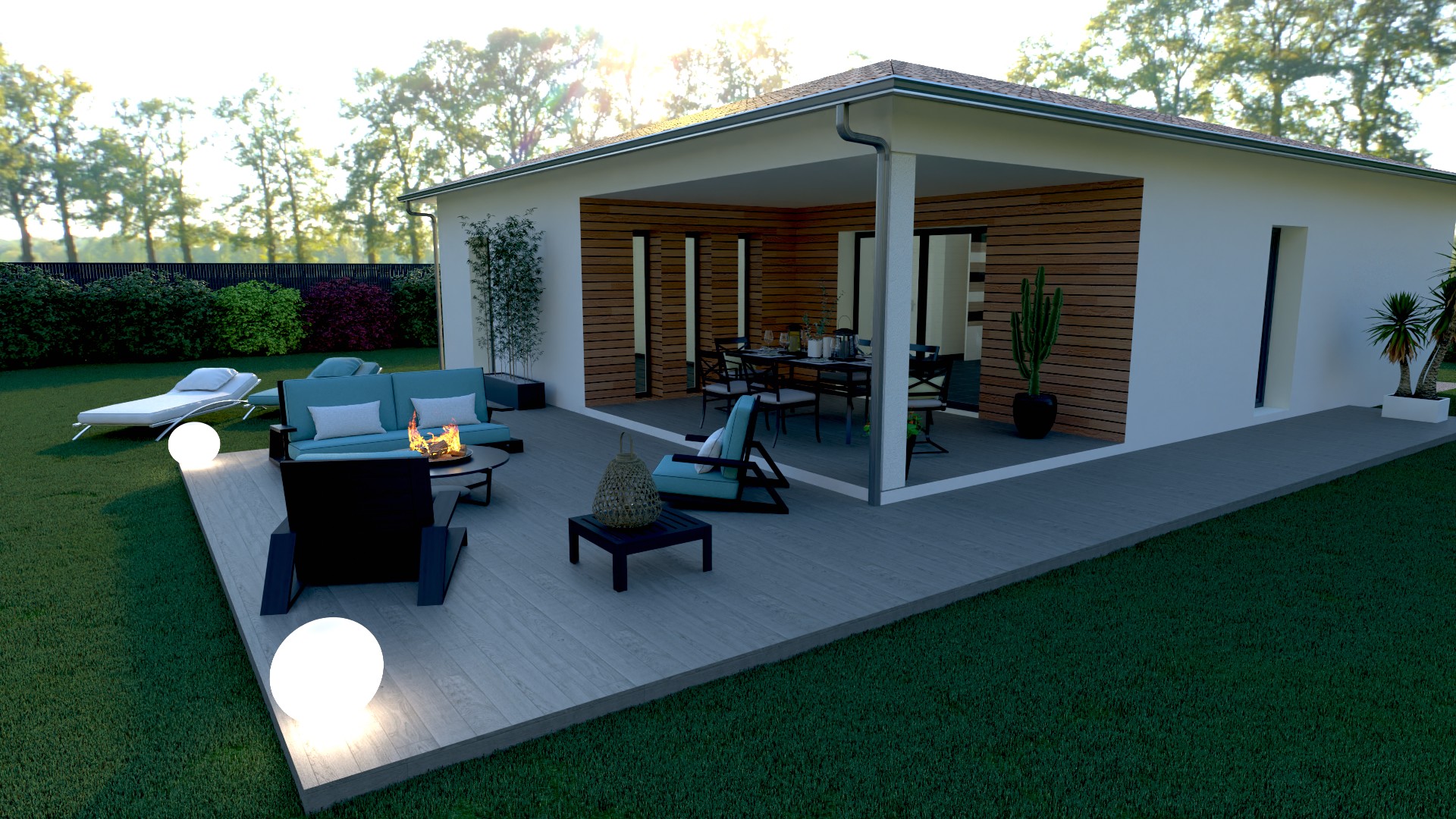 *Le prix indiqué est hors frais de raccordements, de branchements, d’adaptation au sol et de notaire sur le terrain. Ce prix est conseillé et soumis à variation en fonction des secteurs géographiques. Il n’inclut pas les options, ni les aménagements extérieurs et intérieurs (éléments de décoration, mobilier, cuisine équipée...). Garanties et assurances obligatoires incluses (voir détails en agence). Le terrain a été sélectionné et vu pour vous, sous réserve de disponibilité et au prix indiqué par notre partenaire foncier.