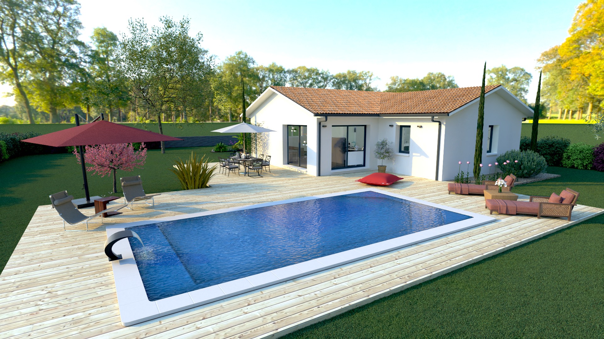 Terrain 700 m2 | Modèle | 80 m2 | 3 Chambres