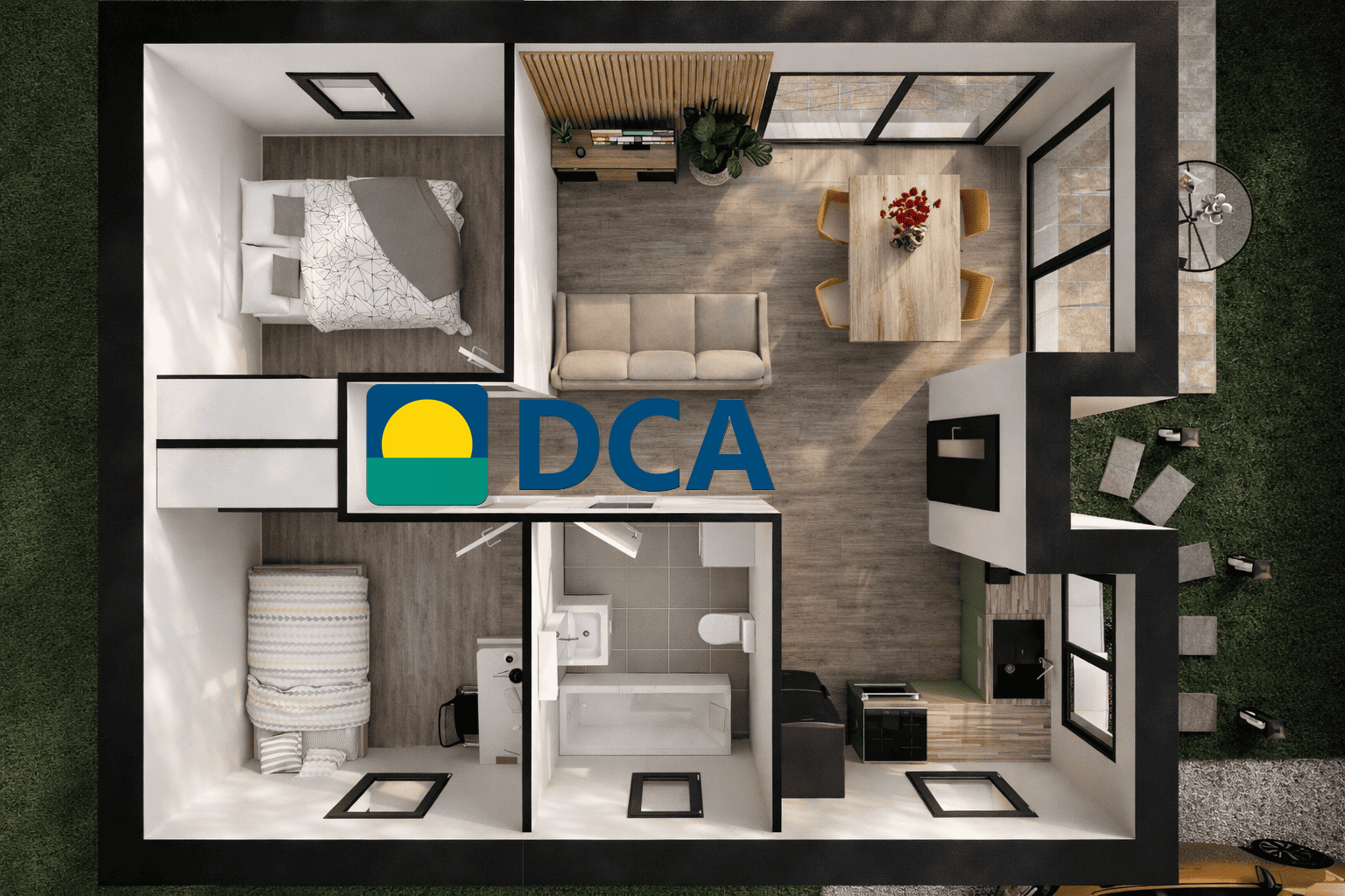 Terrain 520 m2 | Modèle | 50 m2 | 2 Chambres