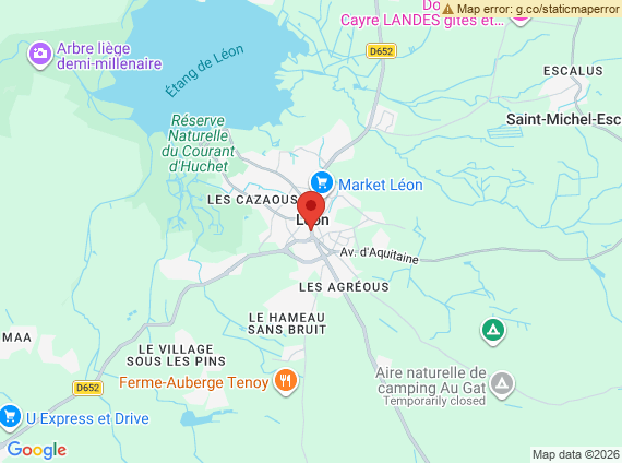 À seulement quelques minutes du lac de Léon, profitez d’activités nautiques, de balades à pied ou à vélo et d’un cadre naturel préservé. Les plages océanes de la Côte d’Argent sont accessibles en environ 20 minutes. La ville de Dax se situe à environ 35 minutes, offrant l’accès aux grandes surfaces, à la gare SNCF ainsi qu’aux infrastructures administratives et médicales.